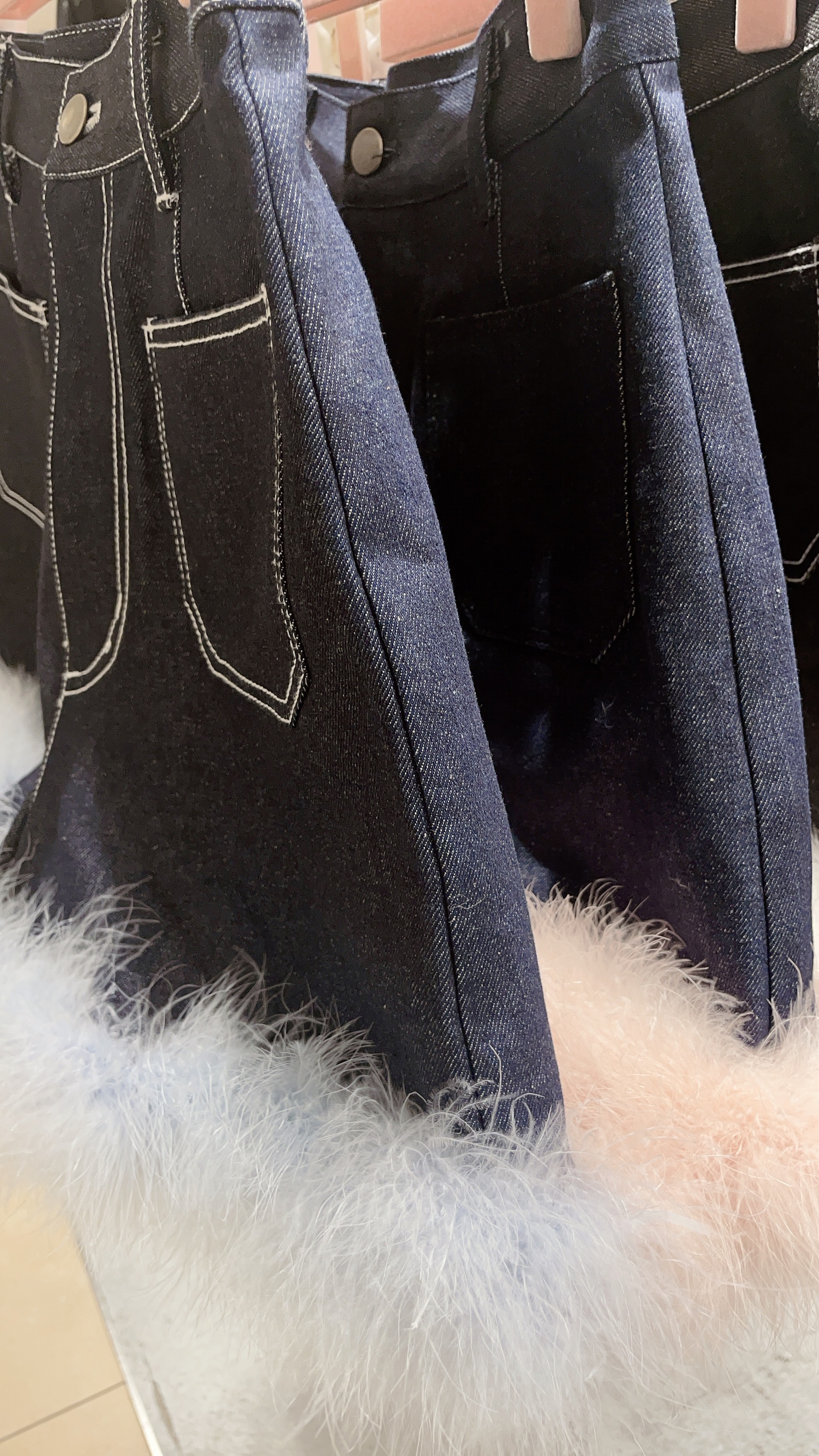 カジュアルなデニム素材に愛らしいピンクファーがポイント♪
