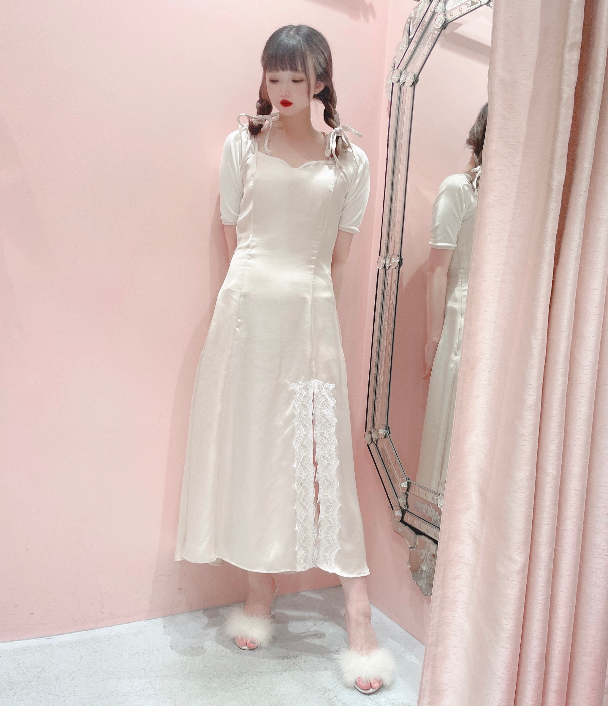 足元は大胆にあいたスリットに繊細なレースがあしらわれています❤︎