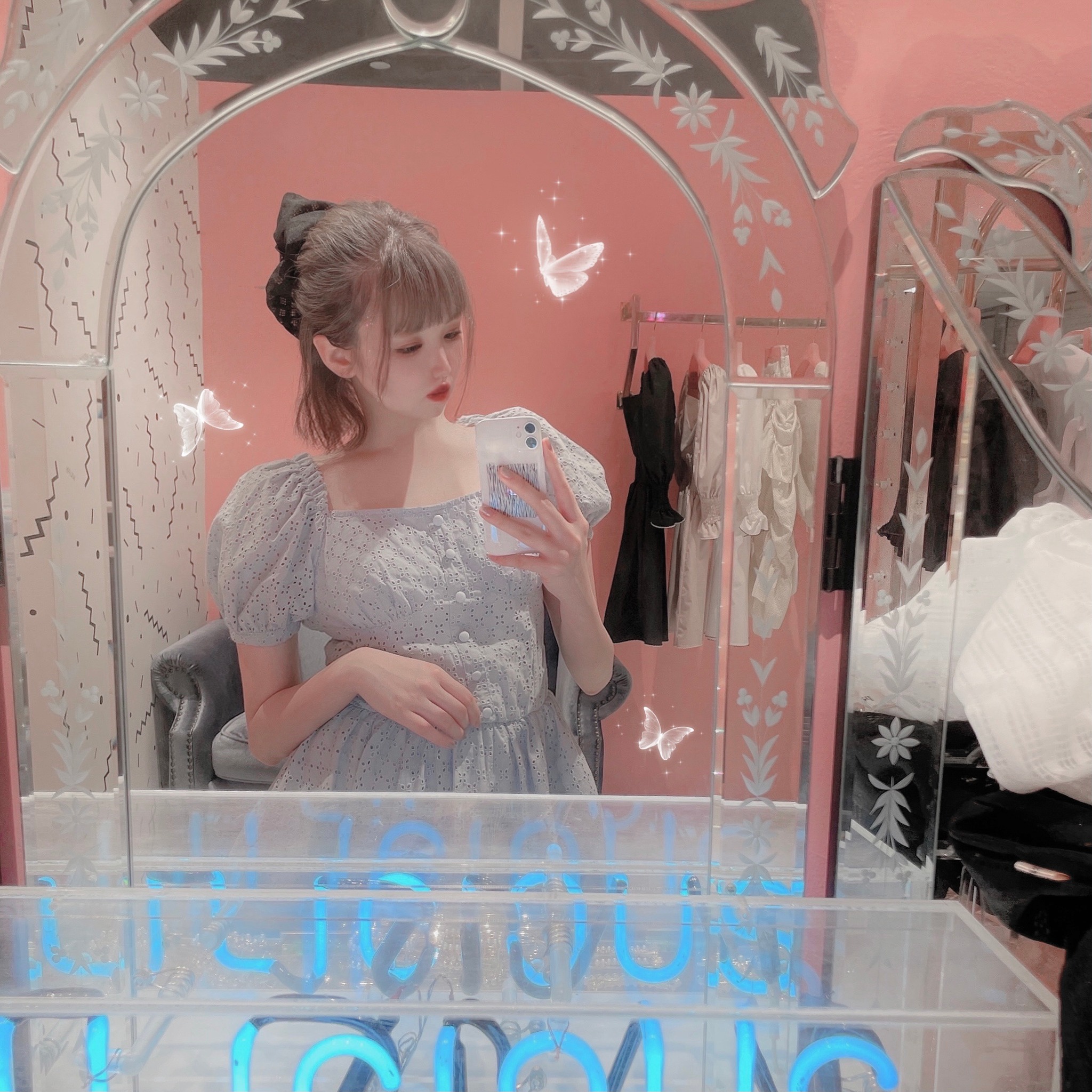パフスリーブがたまらなく可愛い、コーディネートを考える事が苦手な方も、一枚で楽ちんなミニドレスです🦋
