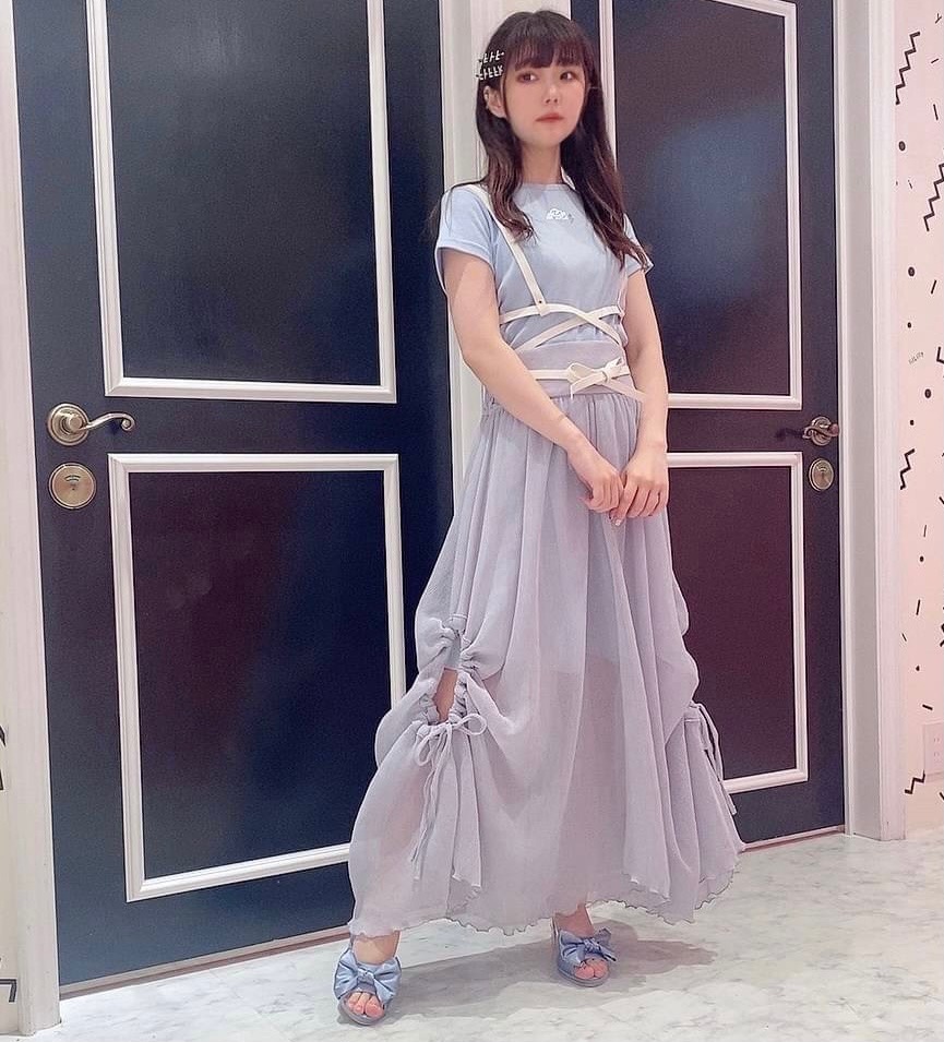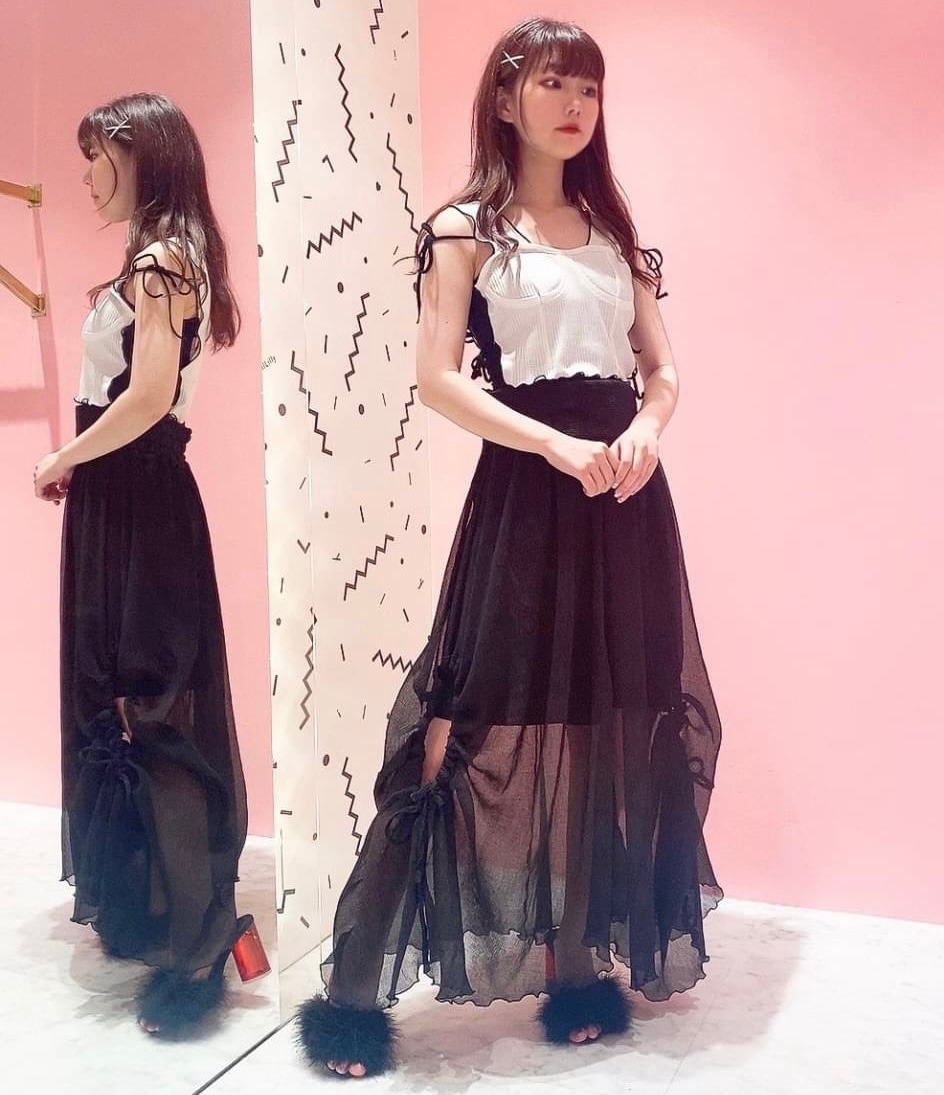 スカートにボリュームがあるので、ピッタリとしたシルエットのサイドリボンビスチェを合わせてメリハリをつけました🥀