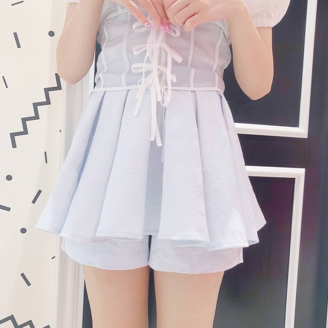 こちらのフラワージャガードショートパンツ、私ははニットと甘めに着用したり、綺麗めなリブトップスと合わせて大人っぽく着回すのもすごくおすすめなのでこれからの秋服にもぴったりです♥️