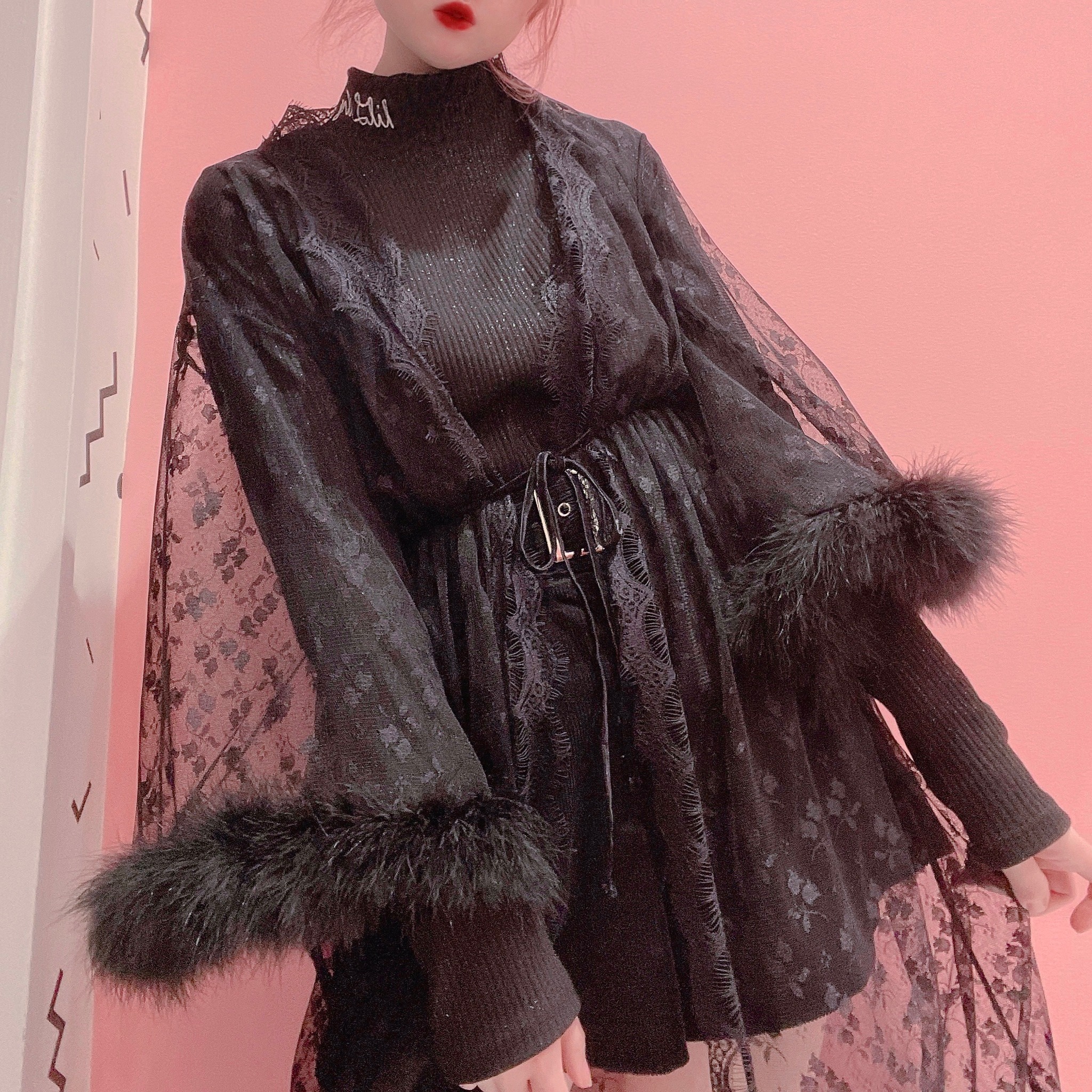 袖口と裾にはlillLillyでオリジナルで染めたフェザーファーがあしらわれています💐