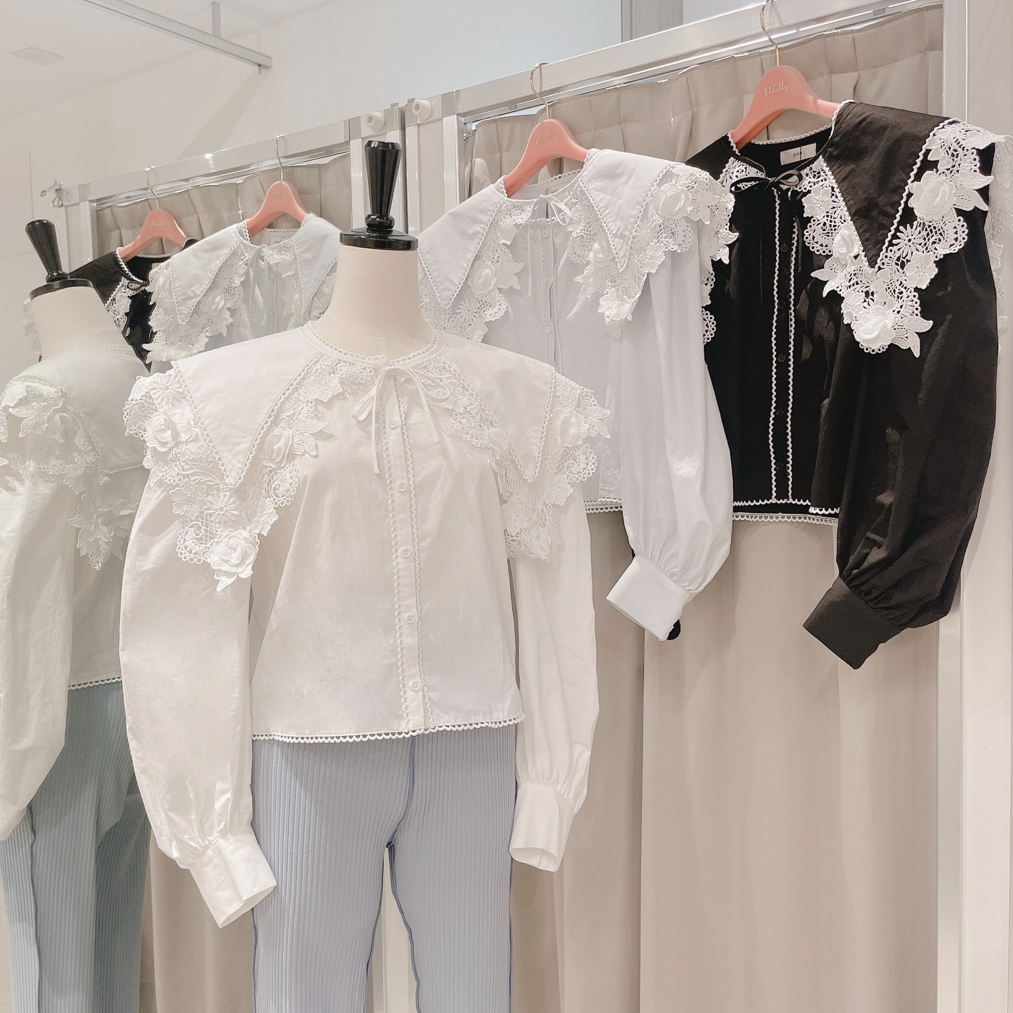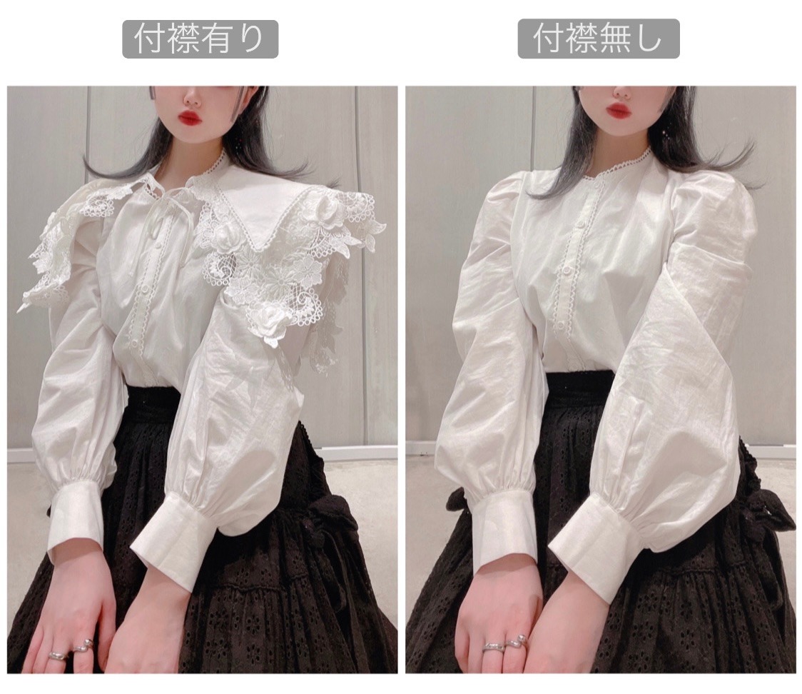 立体的なレースがあしらわれた大振りのセーラーがポイントの付襟と程良いボリューム袖が可愛いブラウスの2セットです🕊♡