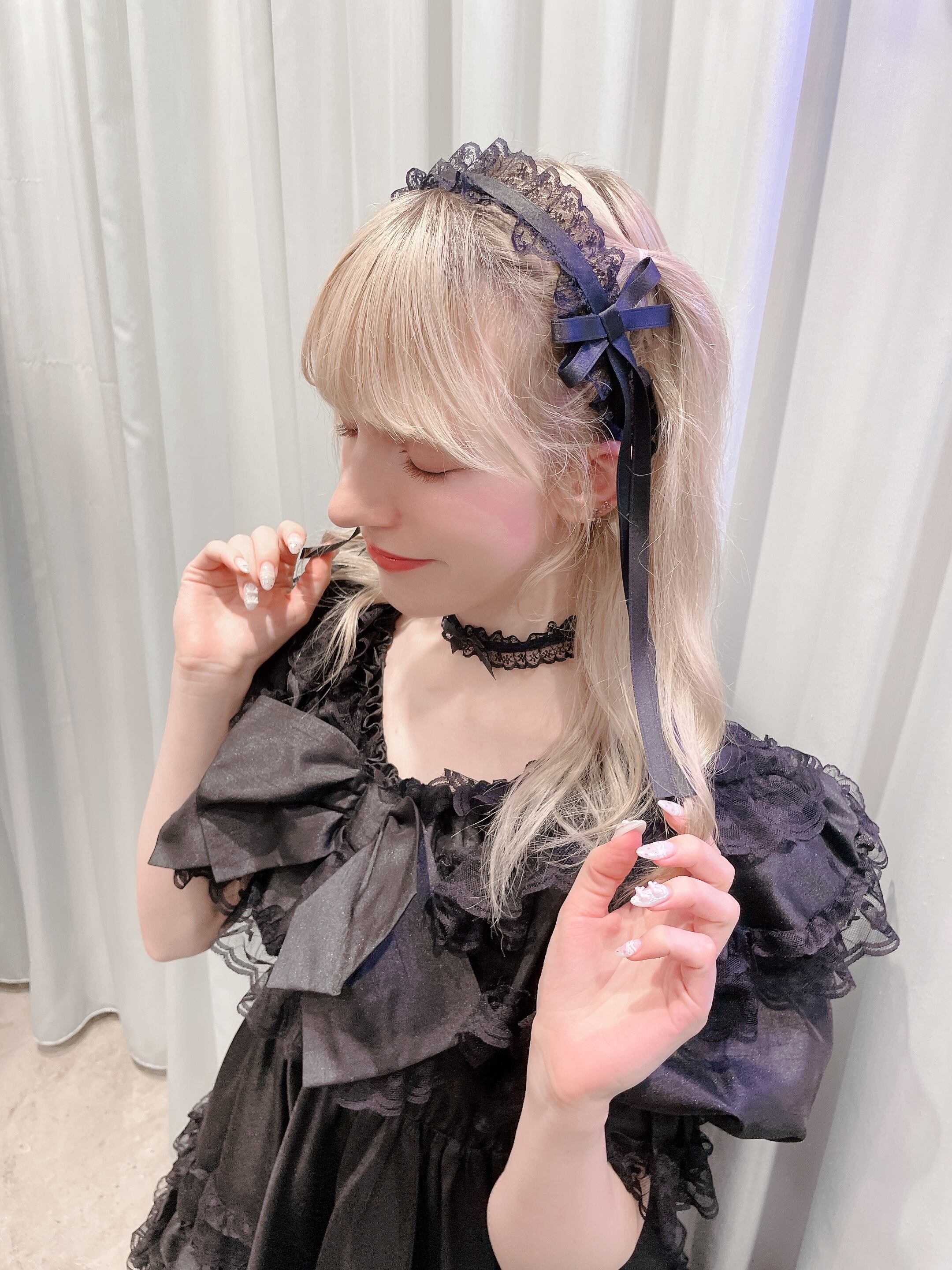 サテンリボンレースカチューシャ