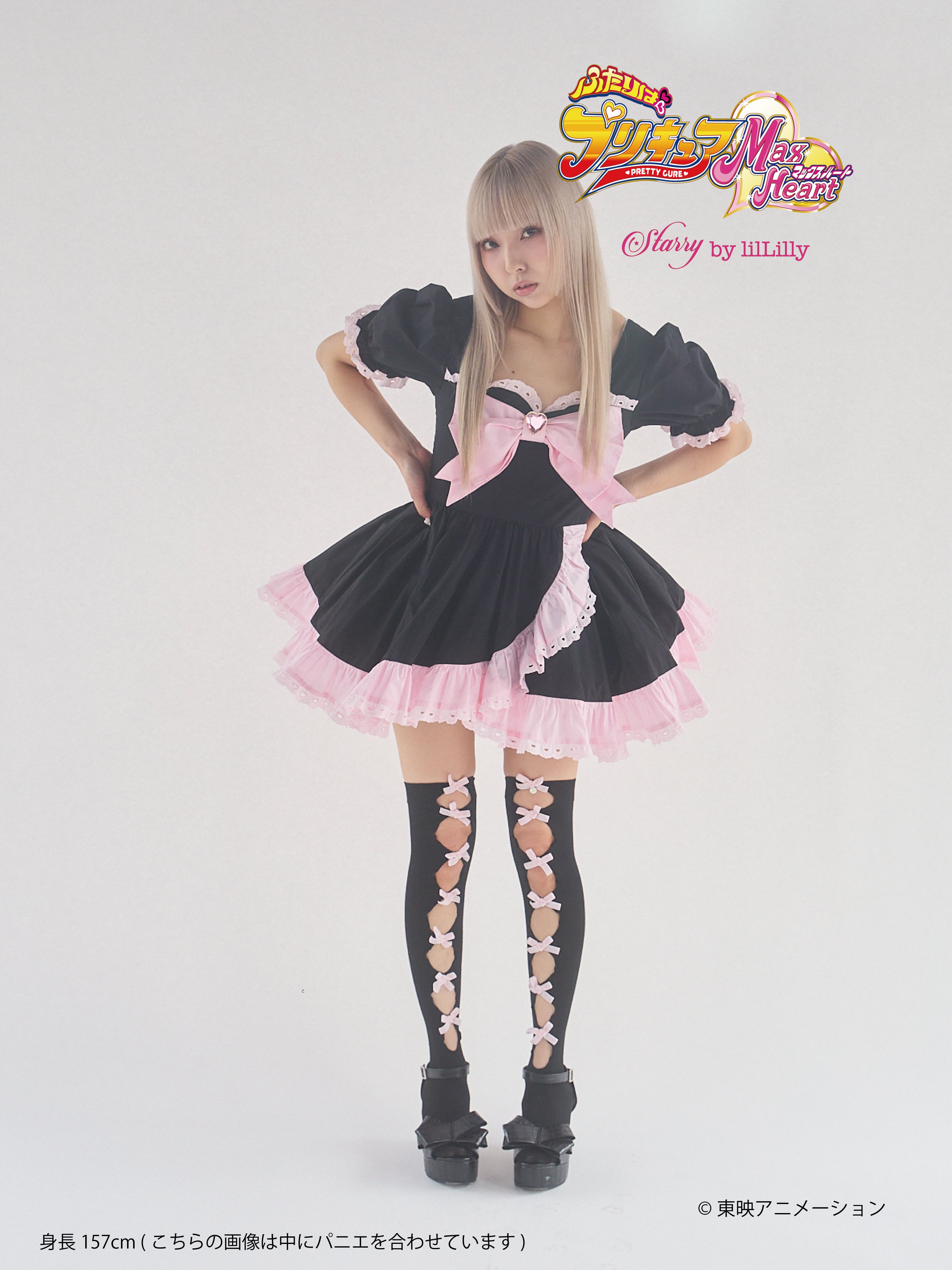 胸元と裾にたっぷりあしらわれたレースは『ふたりはプリキュアMax Heart』のアイコンでもあるハート柄♡