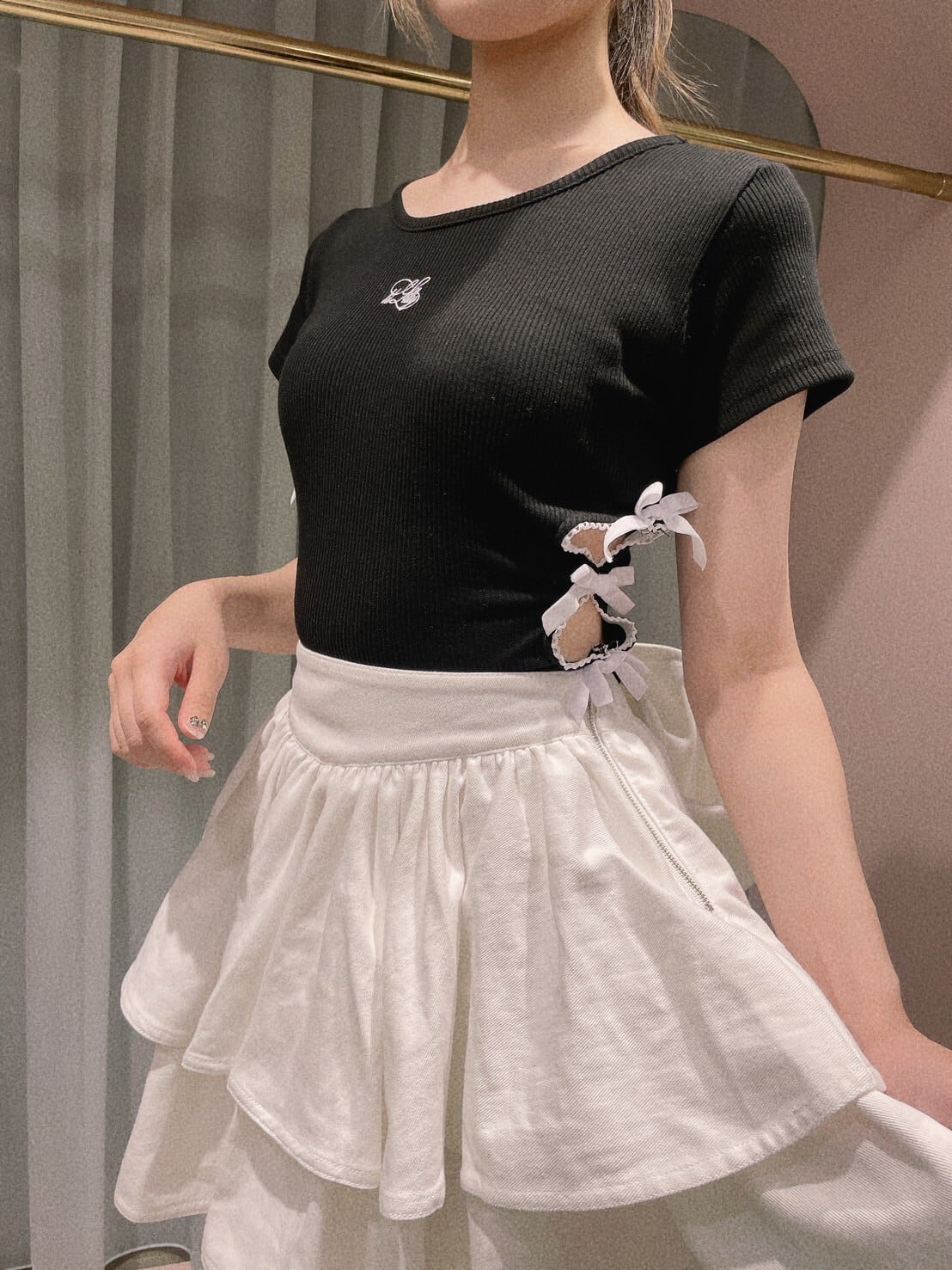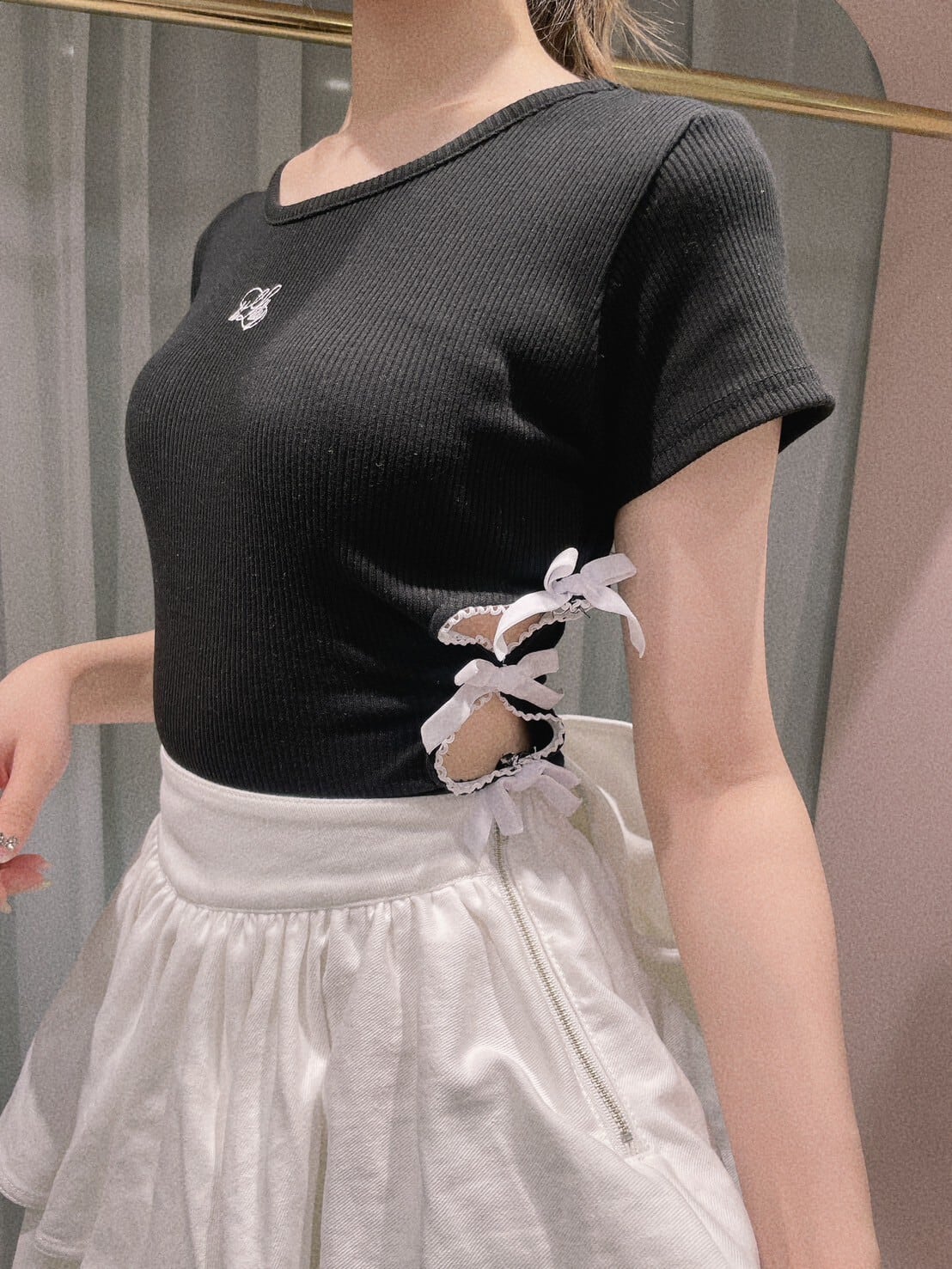 サイドリボンリブトップス