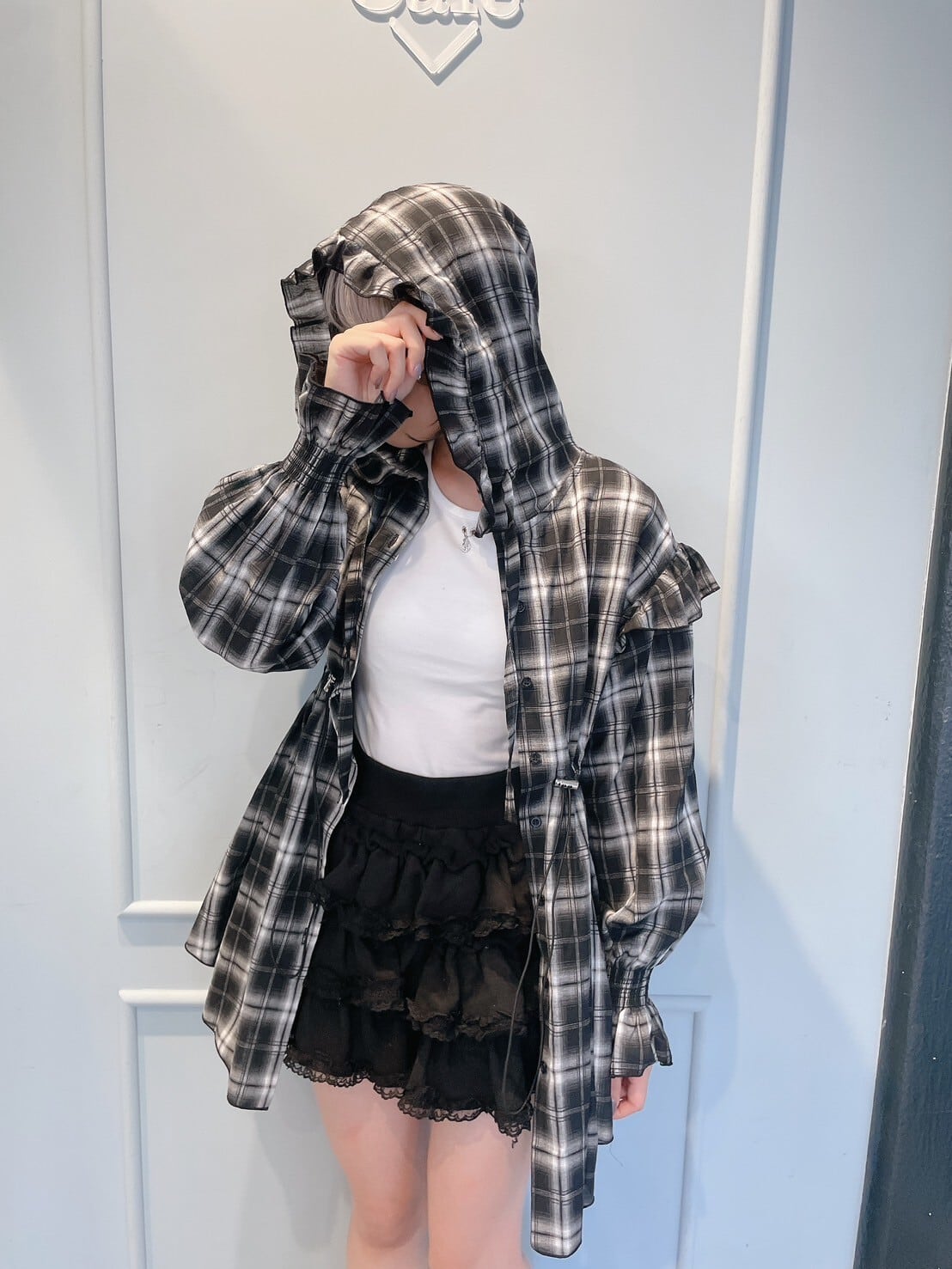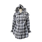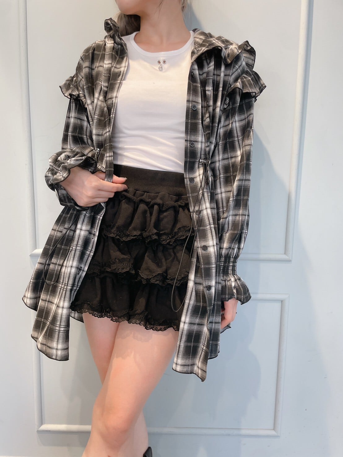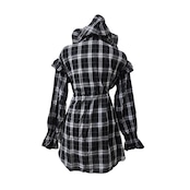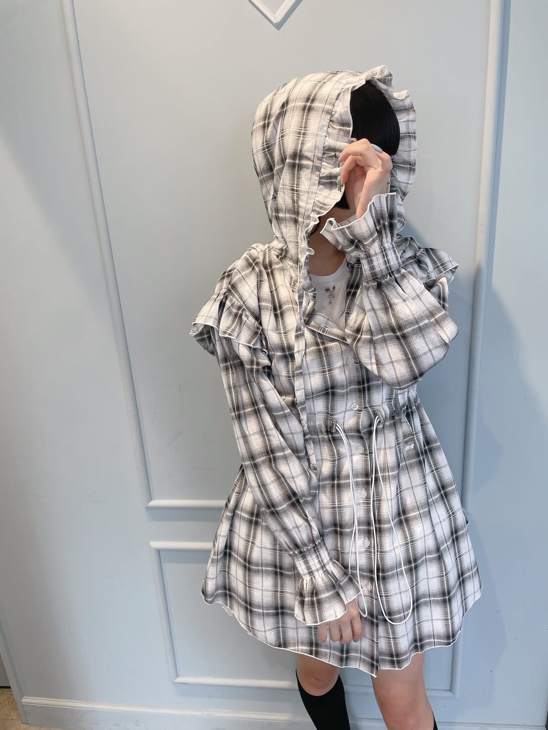 チェックフリルフーディーワンピース