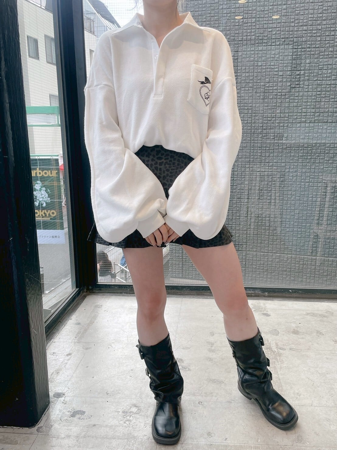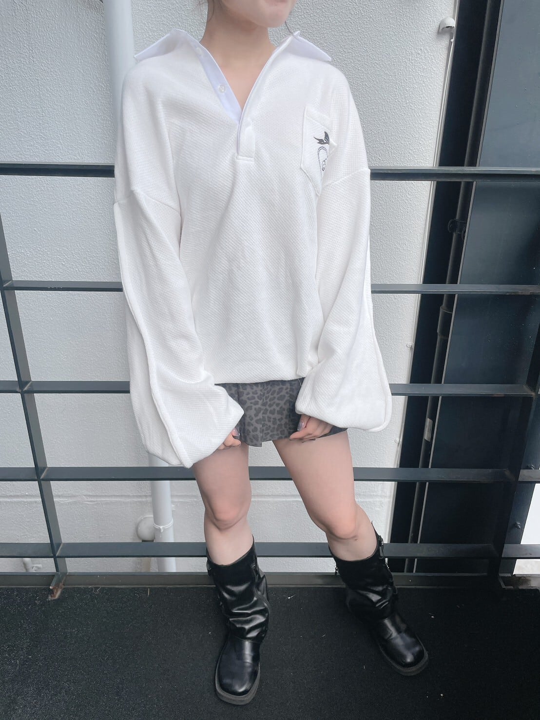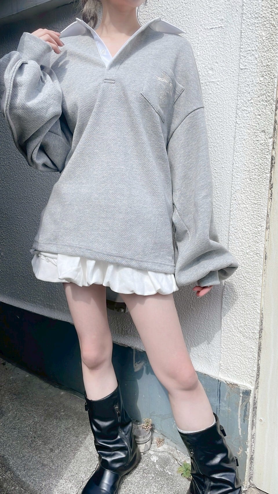 ワッフルラガーシャツミニワンピ
