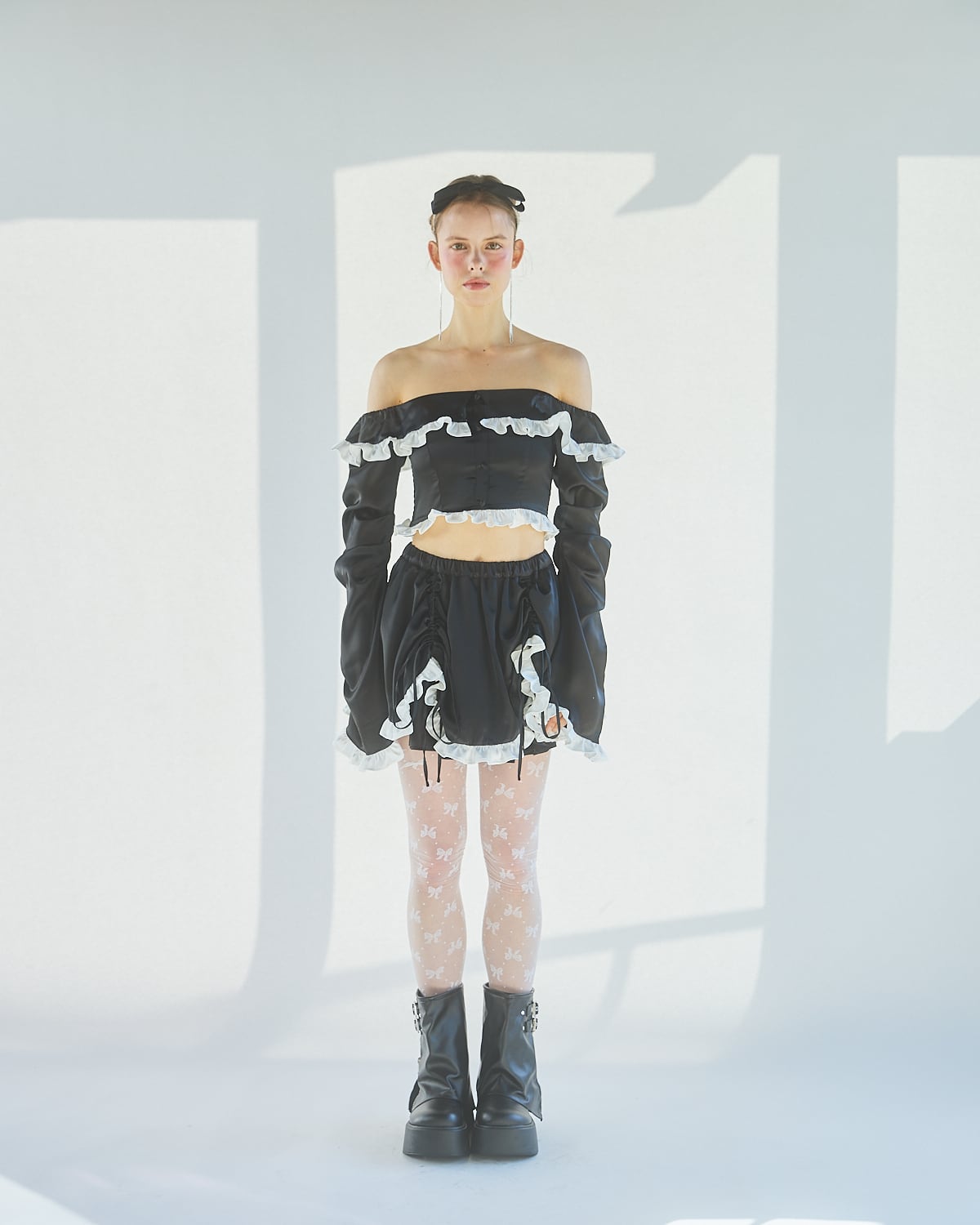 S/S フリルサテンブラウス
