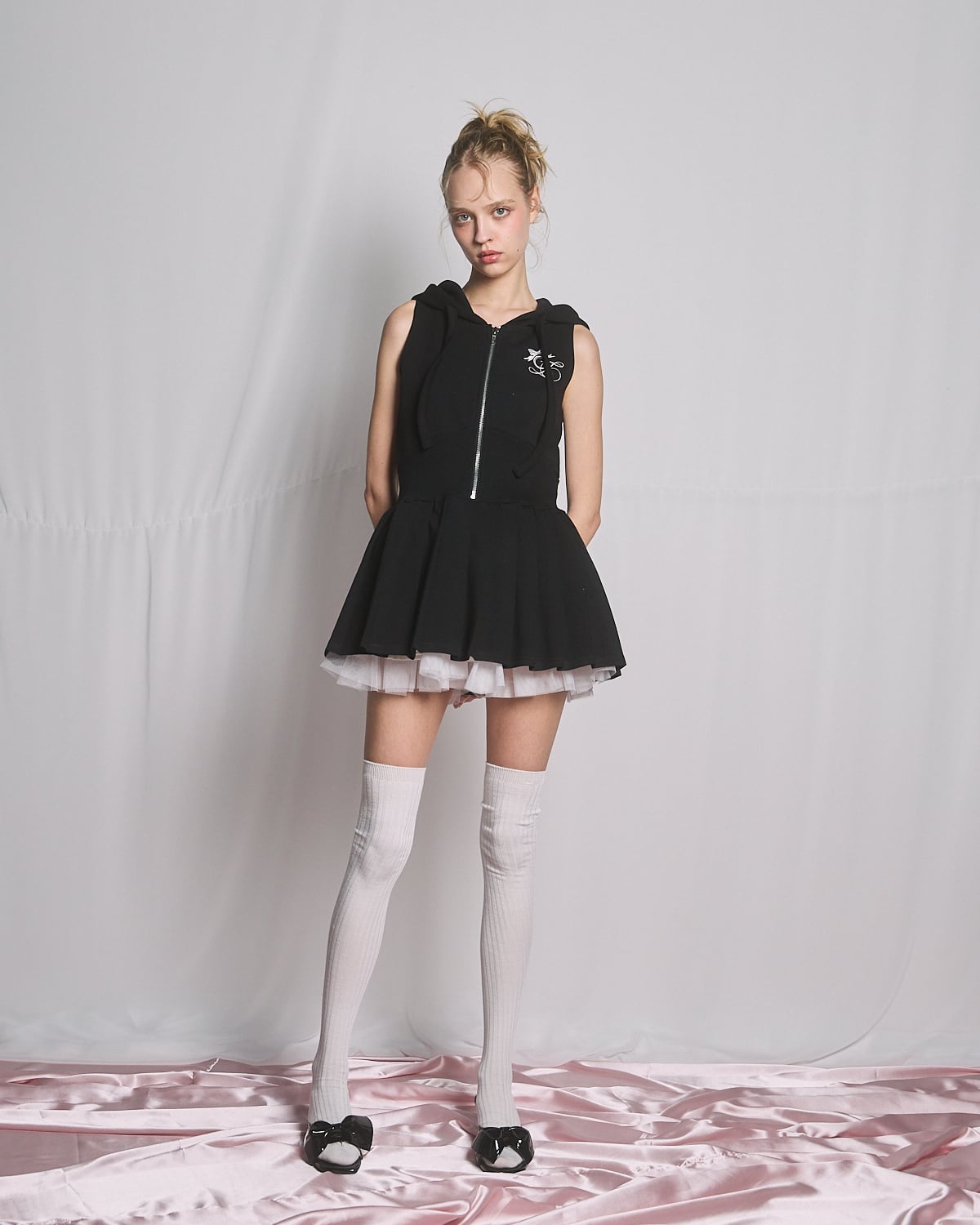 S/S ノースリーブパーカープリーツワンピ