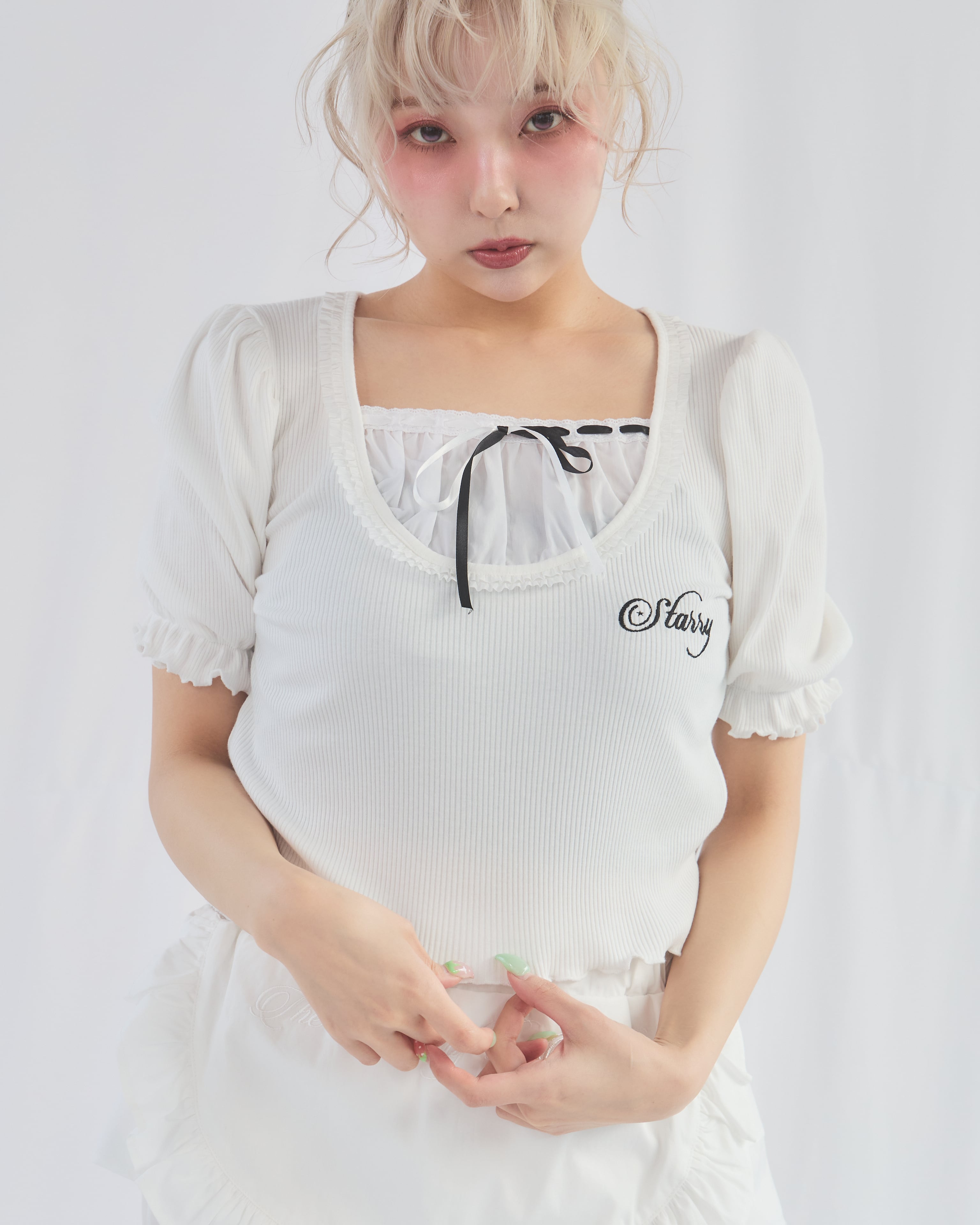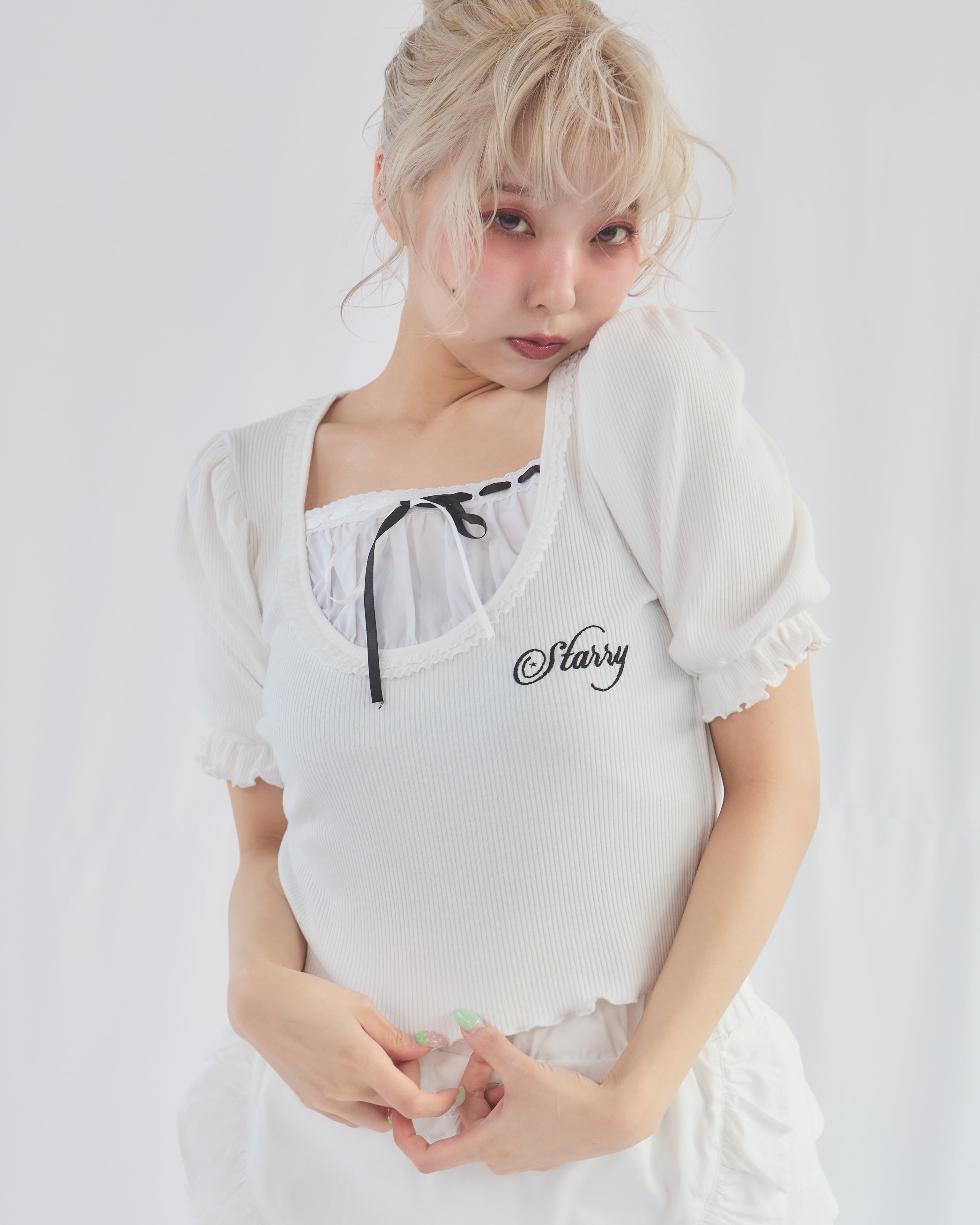 Starry⭐︎パフスリーブリブトップス