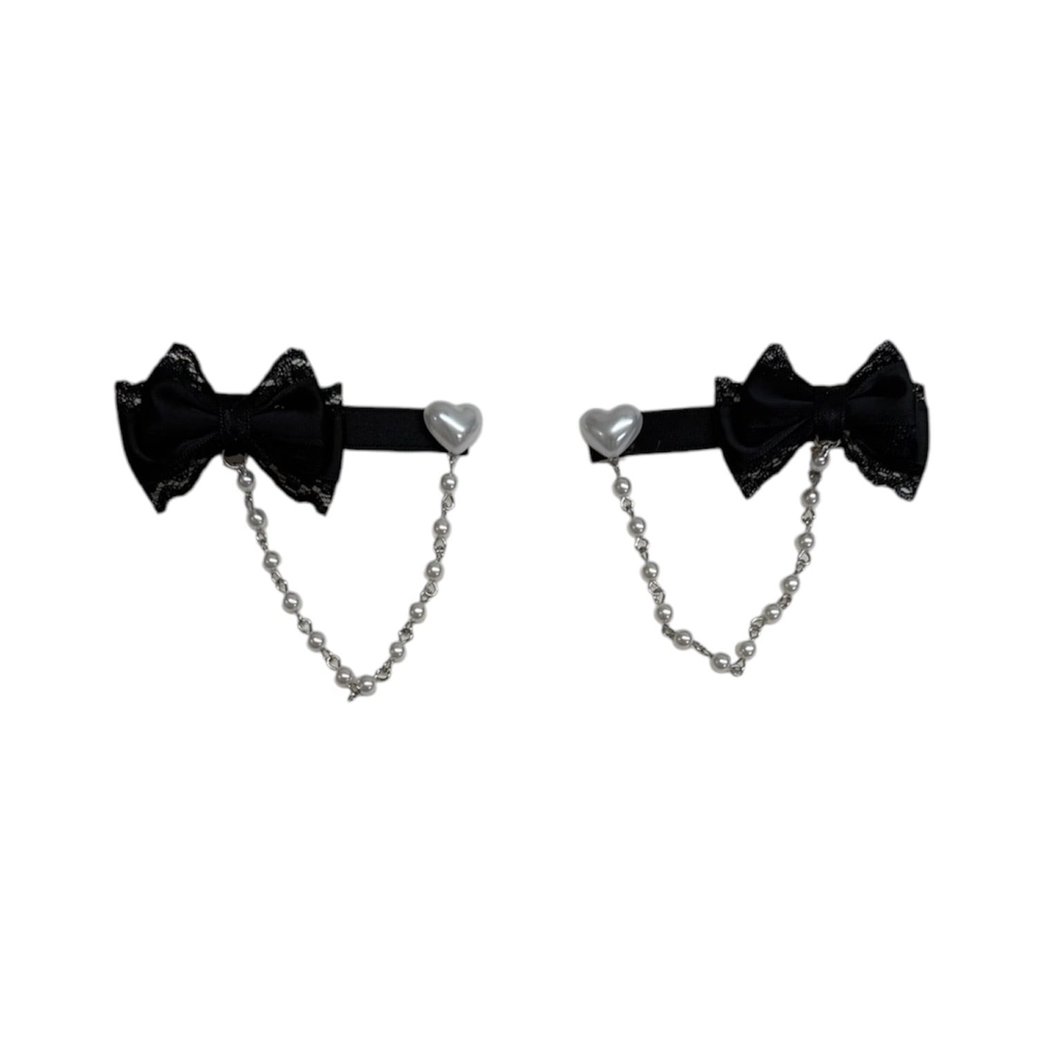 パールチェーンリボンヘアクリップ(2set)